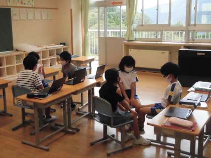 3年生の国語では、自分の考えをもとにみんなで上手に話し合うための学習を行っていました。 この時間は「山小屋で三日間すごすなら何を持っていくか」についてグループで話し合うために自分の考えをまとめていました。