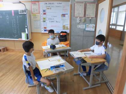 4年生の国語では、「話すこと」についての学習をしています。今日は「お互いに納得するにはどう言ったらよかったか」という課題で、グループで役割を決めて話し合う活動をしていました。