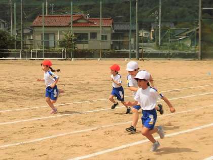 1・2年の体育は、50m走のタイム計測を行っていました。