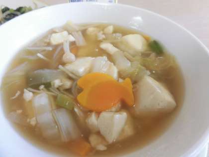 今日の私の野菜あんかけには、にんじんのかわいい魚がのっていました。本校の調理員さんは、毎日このように「かたぬき」で飾ってくださって、目でも楽しませてくれます。本当においしく楽しい給食です!!