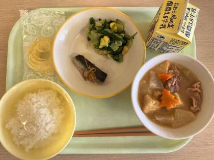 大根の味噌煮は、大根はもちろん、厚揚げやにんじん、白菜などやわらかく煮込まれて、味がしみていてとてもおいしいです。今日も型抜きありました!ツリーでしょうか!
