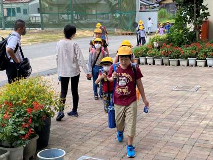 また、1年生は虫を捕まえに校庭で活動するようです。虫取り網を持ってはりきっていました。