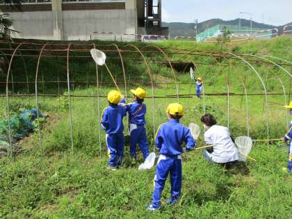 すばしっこく逃げ回る虫たちに、子供たちは右往左往させられました。