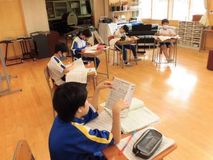 その後は、教科書に載っている楽譜を五線譜のプリントに映す学習をしました。