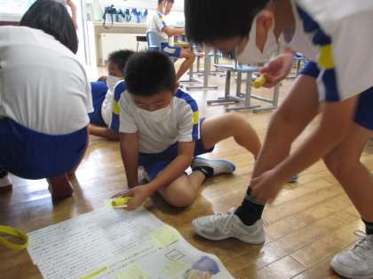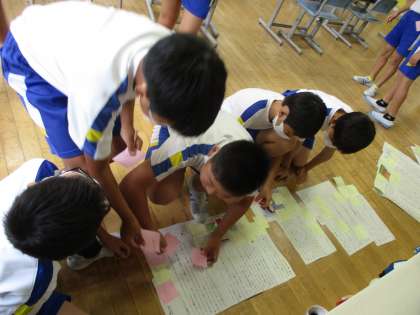 今日は、1人1人が、疑問に思ったところやみんなの意見を聞いてみたいところを書き出しました。そこから、話し合い時での学習課題を作り上げていきます。