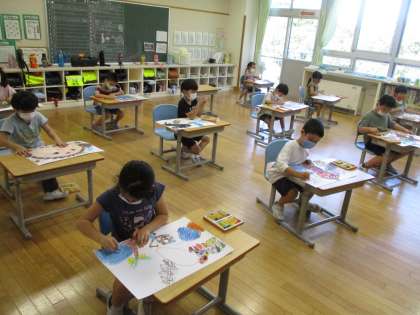 9月21日(火) 1年生 もうすぐ完成、シンドバットのぼうけん 公開日 2021/09/21 更新日 2021/09/21 1年生の部屋 これまで少しずつ描き上げてきた 「シンドバットのぼうけん」の絵も もうすぐ完成です。 同じ話を聞いても、子供たち一人一人の頭の中に描かれる ヴィジョンは十人十色です。