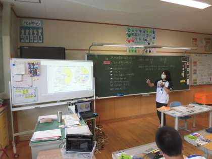 資料で「一人1日あたりの食べ物の割合」を70年前と現在と比較していました。70年前は米が50%近くであったのに現在は20%、また、畜産物の割合が4倍になっています。和食から洋食へ食べ物は変化してきていることが分かったようです。
