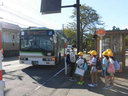 3年生は、楡原口8時41分発のバスで校外学習に出かけました。