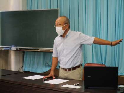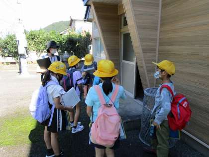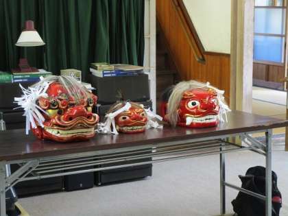 笹津地区から岩稲地区へ移動し、岩稲公民館に到着です。公民館では地域の方が待っておられ、地区の歴史や祭りについて説明していただきました。