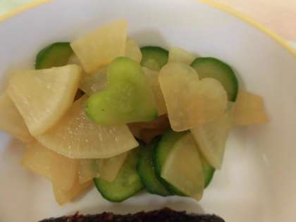 今日はうま煮にも華風和えにも、ハートがたくさん入っていました。