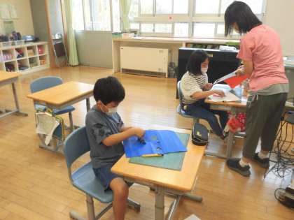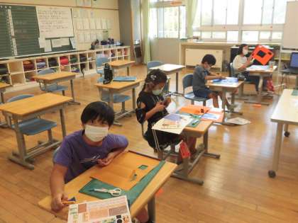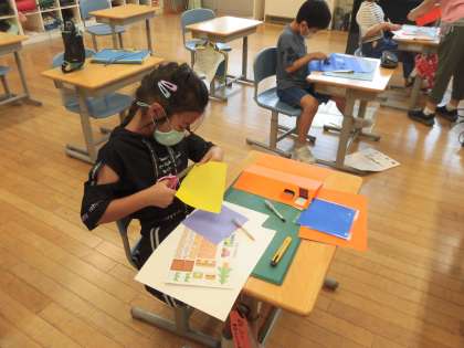 2年生は、厚紙で窓のある建物をつくっていました。カッターを使って、厚紙を切り抜いて建物の形にしていました。窓から何が出てくるのか、一人一人のアイディアが楽しみです!