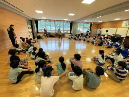 今日の全校音楽は、パーカッション奏者「ヤマダ ベン」さんをゲストにお招きして行われました。