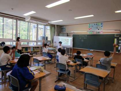 6年生は、理科「変わり続ける大地」の学習で、地震や火山による大地の変化について一人一人調べ、発表していました。