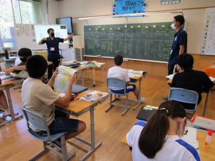 5年生は、理科「台風と天気の変化」の学習で、台風などの天気によってどのような災害が起こるかを考え、発表していました。