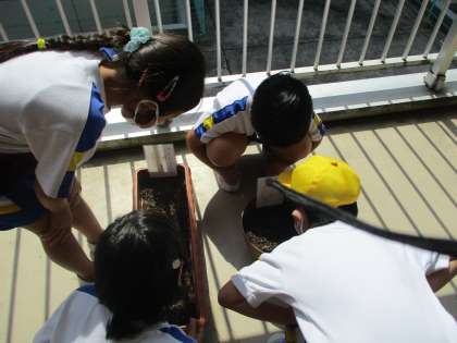 この間の生活科で種を植えた野菜のプレート立てをしました。
