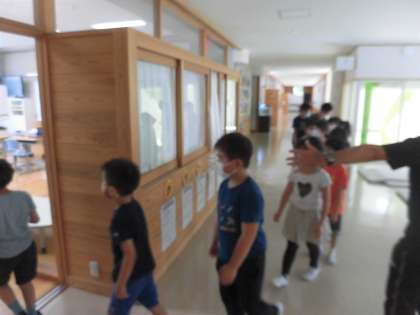 10月11日(月) 避難訓練 公開日 2021/10/11 更新日 2021/10/11 碧っ子の姿から 今日は、避難訓練を行いました。休み時間の出火を想定した訓練で、近くにいたもの同士がまとまって避難します。上学年の子供が声をかけて行動します。 どの場所でも落ち着いて行動できていたようです。