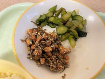 フライビーンズは、私が小学生の頃からあり、昔も今も人気のメニューですが、最近は小魚入りになっており、栄養面でもおいしさでもよりよくなっているようです。さくさくしていてとても美味しいです!