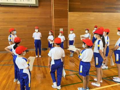 白団は多目的室で、赤団は体育館で活動しました。