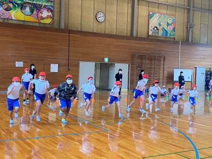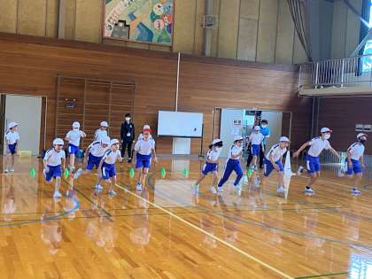 10月13日(水) 体育大会の練習 公開日 2021/10/13 更新日 2021/10/13 碧っ子の姿から 朝の時間に、全員が体育館に集まり、走る運動を行いました。 スタートの練習と、選抜リレーに出場する子は、バトンパスの練習をしました。