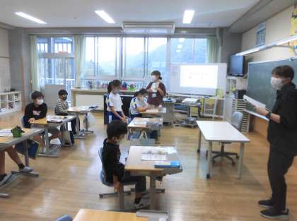 4年生は、外国語指導員の先生と担任の先生と外国語活動を行っていました。