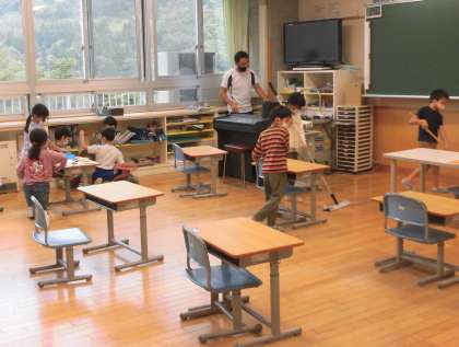 1年生教室に、自分たちの後輩の年長さんが来ると知り、一生懸命掃除をしていました。