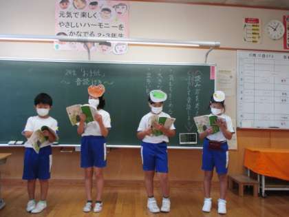 全員が全ての登場人物になって、数パターンの音読げきに挑戦しました。それぞれの登場人物やナレーターの言葉に、気持ちをこめて読む2年生がとてもすてきでした。