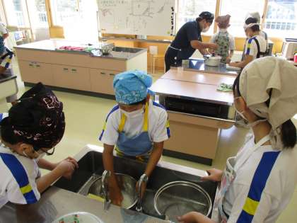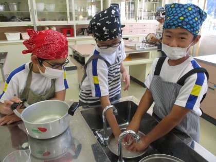 水や火の加減に気を付けました。炊く前の米の様子と、炊いた後の米の様子を比べて、その変化を記録することもできました。