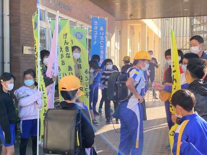 10月18日(月) 公開日 2021/10/18 更新日 2021/10/18 碧っ子の姿から 今朝は気持ちよく晴れ渡っています。 今週末の小中合同体育大会に向けて、今日から中学校との合同練習が始まります。 また、今日と明日はさわやかあいさつ運動です。PTAの方と一緒に気持ちのいいあいさつをしています。