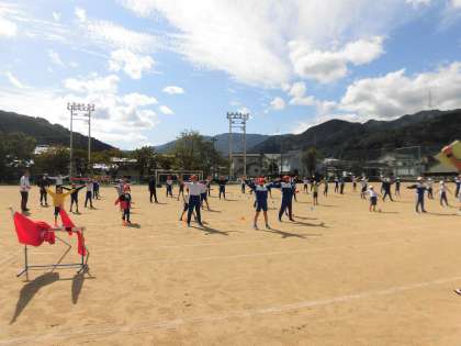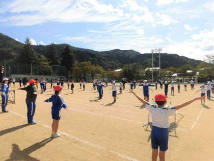 みんな、のびのびとラジオ体操に取り組んでいます。