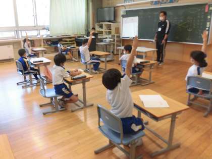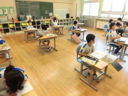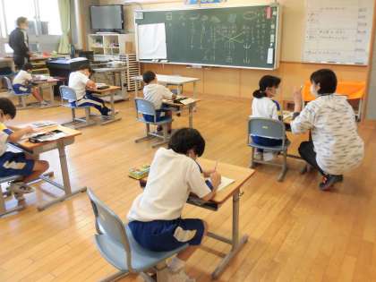 1年生の国語では、漢字の学習をしていました。ものの形をかたどって文字にしたものについて、逆に漢字からものは何か予想し合っていました。