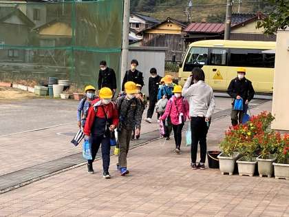 今日は、楡原中学校、細入保育所と合同の避難訓練を行います。