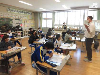4限は、ALTと中学校の英語の先生との外国語です。