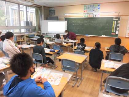 外国語支援講師の先生と一緒に学習しています。