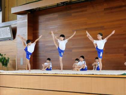 4年生は、マット運動「Power up!」の発表をしました。