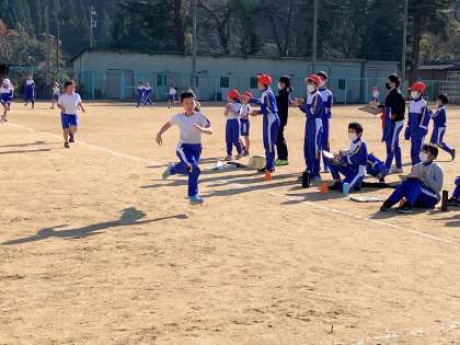 スタートダッシュする子、自分のペースで走る子、中学年になると自分の走り方を工夫しています。