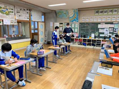 6年の国語では、狂言「柿山伏」の学習を行っています。