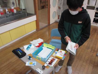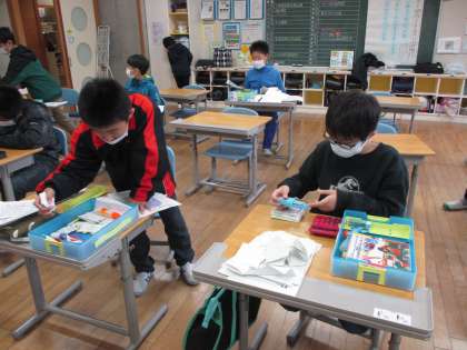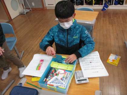 今日は、お道具箱の中を整理整頓しました。仕切りを使うなど、工夫しています。