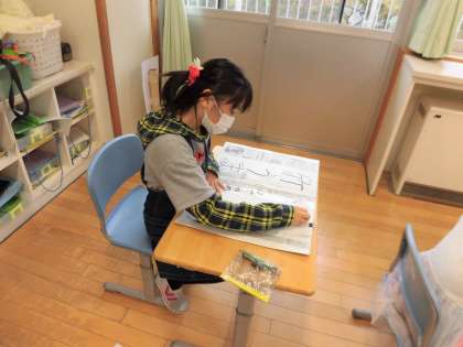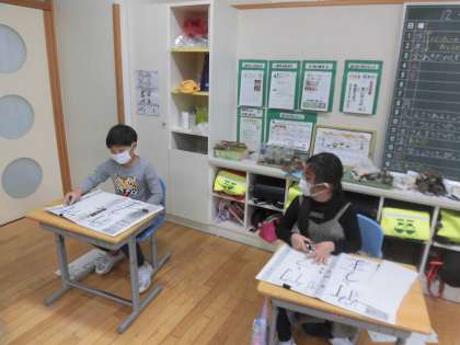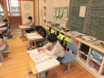 2年生の書き初めの言葉は「竹うま」です。漢字一文字とひらがな二文字ですね。