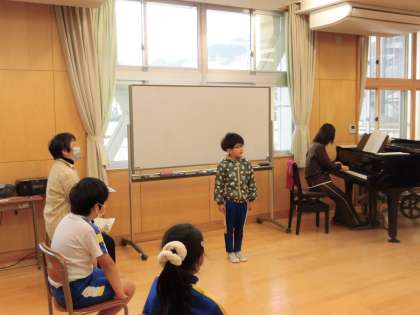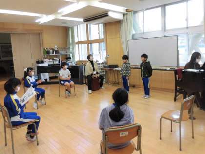 3年生は、全校音楽の「カラオケ大会」で発表する歌の練習をしています。歌っているときの表情やハーモニーの美しさなどに気を付けながら練習しています。