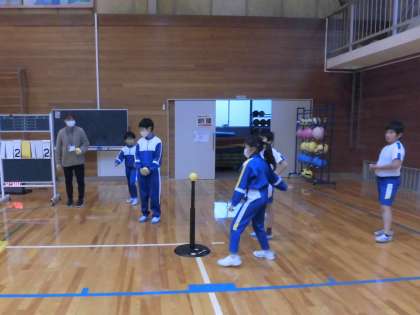 3・4年生の体育では、ティボールのリーグ戦が始まりました。