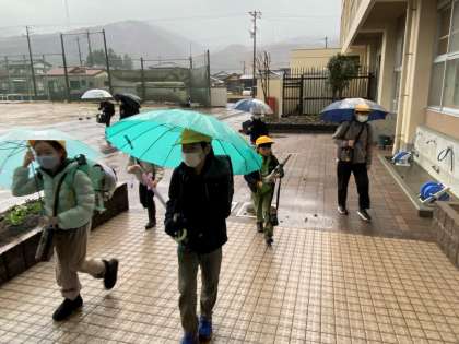 今朝の登校時間は、雨風共につよく、車で学校まで送ってもらう子供たちがたくさんいました。