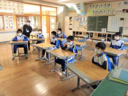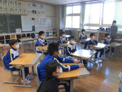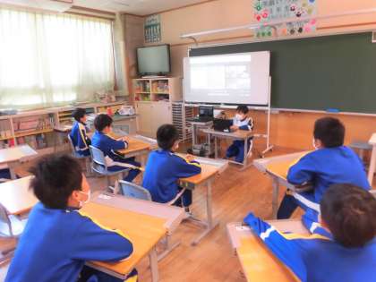 5年生は、国語の学習で船峅小学校の5年生とオンラインで意見交換をしています。