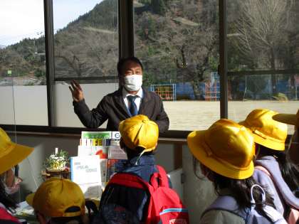 猪谷小学校跡地である、楡原南部地区センターでは、地区センターでの仕事内容や地域について教えてもらいました。