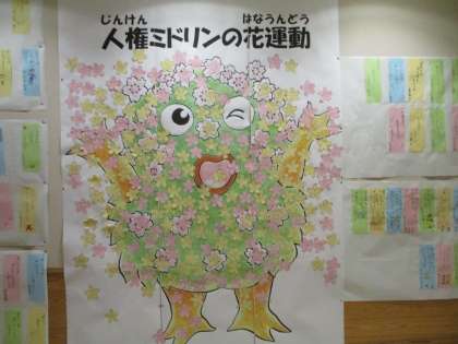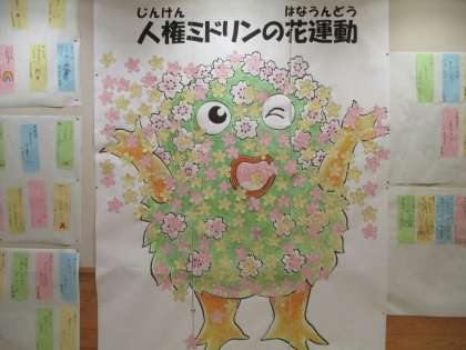 写真1枚目・・・1週間の人権週間を終えて、人権の花が満開に咲き誇ったミドりん