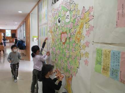写真2枚目・・・最終日、満開の人権の花に喜ぶ碧っ子