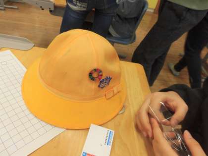 みんな、誇らしげに黄色の安全帽につけていました。