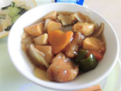 酢豚は、豚肉やにんじん、じゃがいも、ピーマンなどボリューム満点でした。