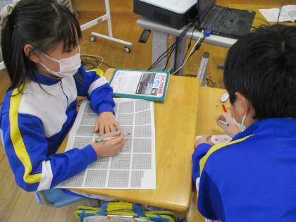 「縦が10個あって横も10個あるから、10×10で100だよ」「100のかたまりが10個で1000だから・・・」と、学んできた内容を生かして計算をしていました。