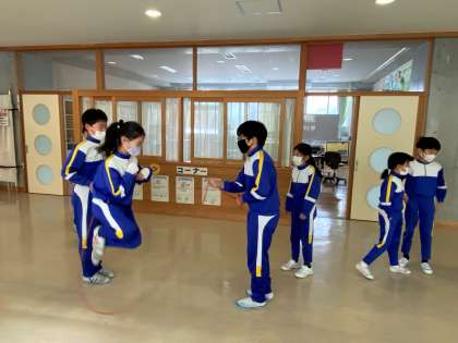 運動タイムに、長なわの練習をしました。