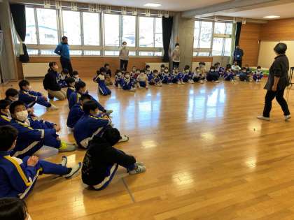 最初は、1年生から5年生で卒業式に歌う合唱曲の練習をしました。